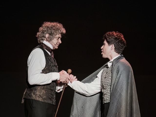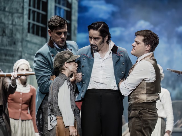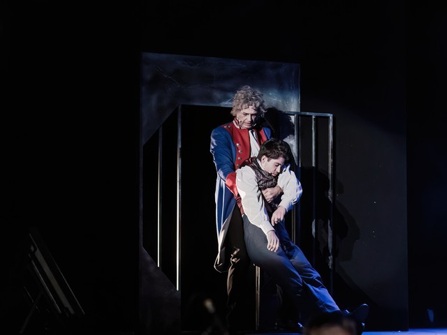 Priredba muzikala prevzema vloge iz romana, ki jih dodatno poglobi glasba, pod katero se podpisuje Claude-Michel Schönberg (1944). Skladatelj jo je zasnoval kot vrsto mogočnih glasbenih točk, ki v dramaturškem smislu gradijo prikaz notranjih monologov junakov, razkrivajo njihovo notranje dogajanje in čustvene preobrazbe. Schönberg je prav za to delo prejel grammyja za najboljši album muzikala (1987). Uporabil je različne glasbene pristope ter koncipiral množico tem in motivov, s katerimi jasno izraža čustveno kompleksnost zgodbe in z njimi gradi karakterizacijo vlog.