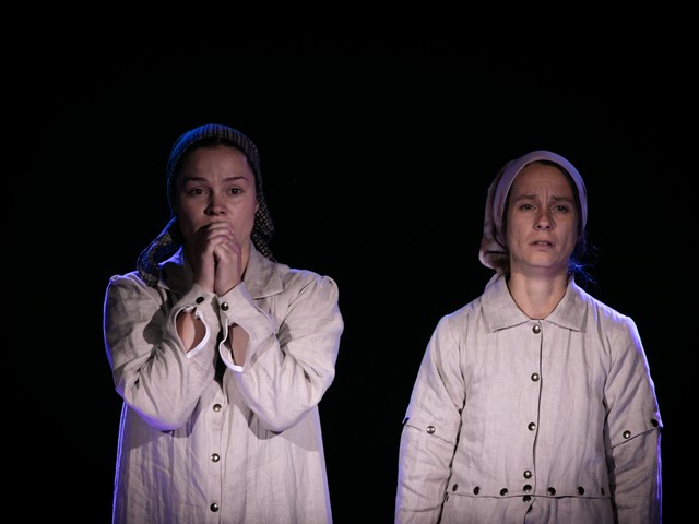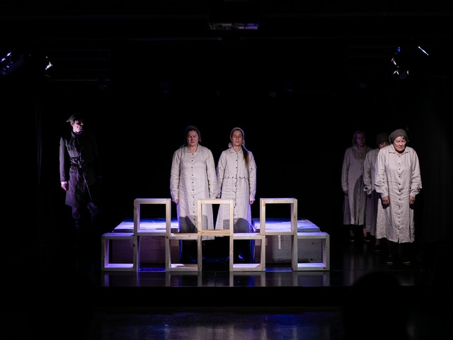 Dvojezična praizvedba drame.