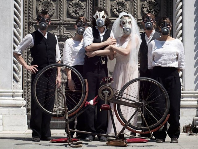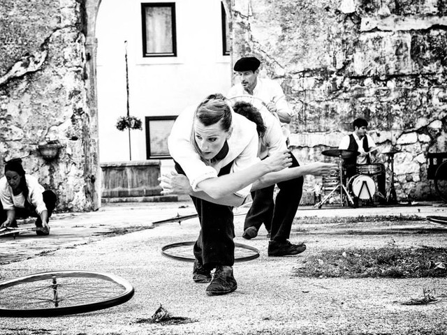 Plesalci skupine Arearea na jeklenih ogrodjih svojih koles iščejo potrditev življenja in lepoto srečanja z drugim človekom – mir. Skupino Arearea, ki vključuje plesalce in umetnike različnih disciplin, je leta 1992 ustanovil Roberto Cocconi v Benetkah, svoje poetične plesne dogodke pa predstavljajo na prizoriščih vsakdanjega življenja ter s tem preizprašujejo ustaljene lokacije uprizarjanja.