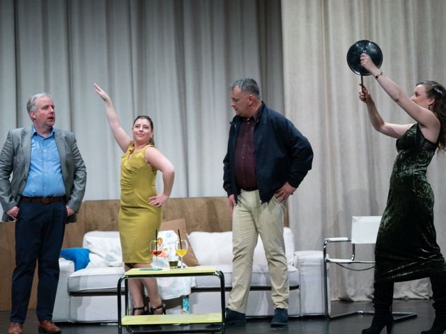 (Totalno) katastrofalna večerja je vrhunska komedija po besedilu Marca Camolettija v priredbi avstrijskega igralca in kabaretista Michaela Niavaranija, ki je izvirnik osvežil in dramaturško izostril.